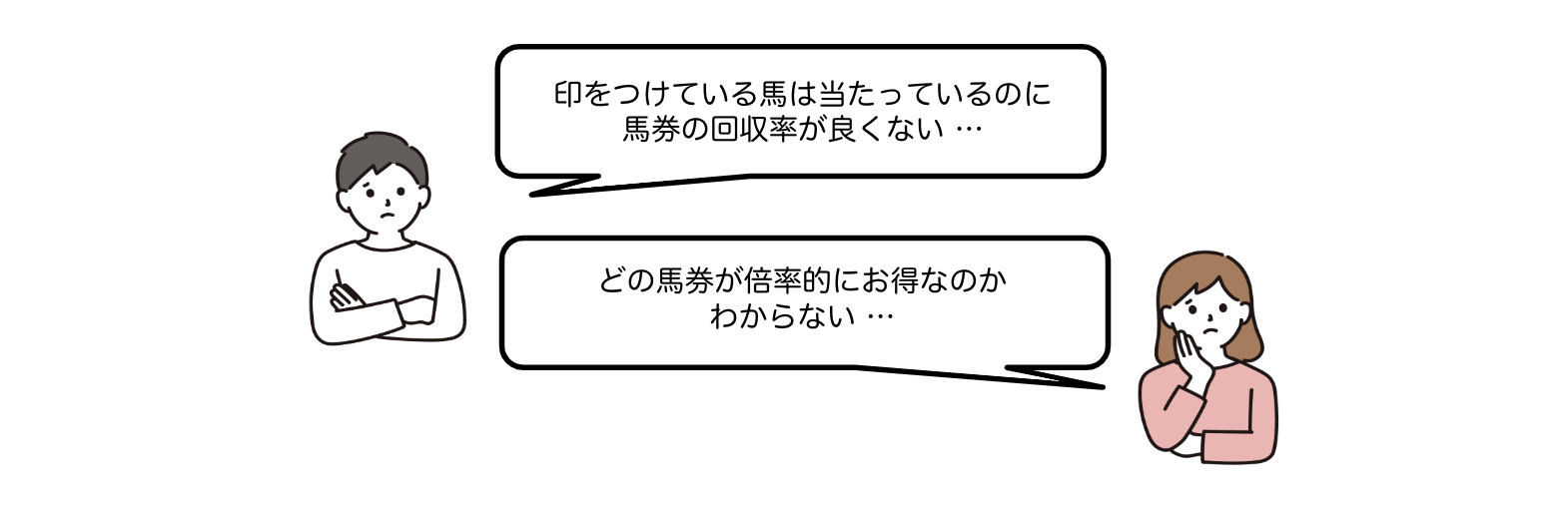 競馬で馬券を買っていて「印を付けた馬は良かったけど、馬券は外れた...」「どの馬券がお得なのかわからない...」と思ったことはありませんか?